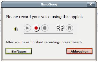 A ferramenta <NanoGong> é representada pelo ícone . Esta ferramenta será exibida com a seguinte janela de editor: